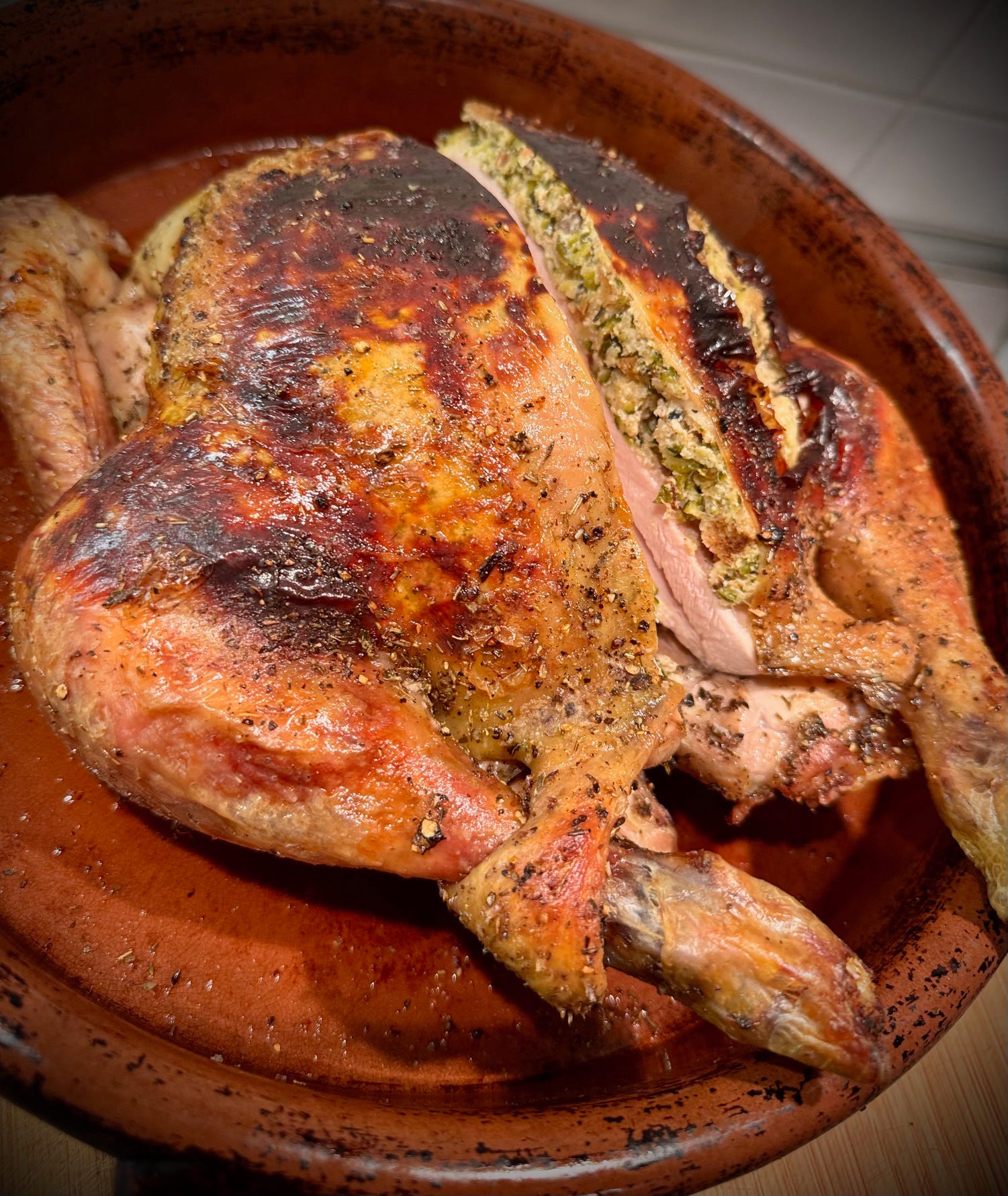 Stuffed and roasted chicken, hommage à Richard Olney