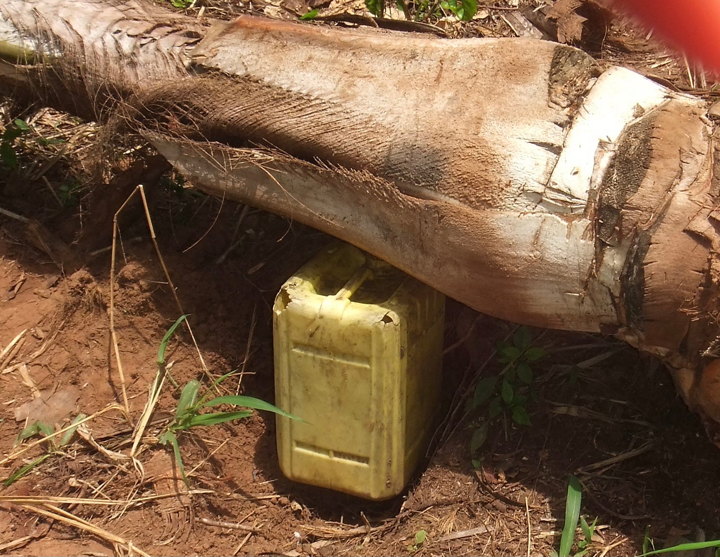 It starts at the palm tree—a date palm, an oil palm, a raffia, they all make sap which must be extracted. In a perfect world the sap is tapped from live trees, which is slow. In the real world, meaning the developing world where people live on a dollar a day, the trees are cut down, then slashed and burned at the base to speed the sap, which is collected in plastic jugs. Farmers in Ghana understand deforestation, but the children need school books and so palm trees meet the machete.